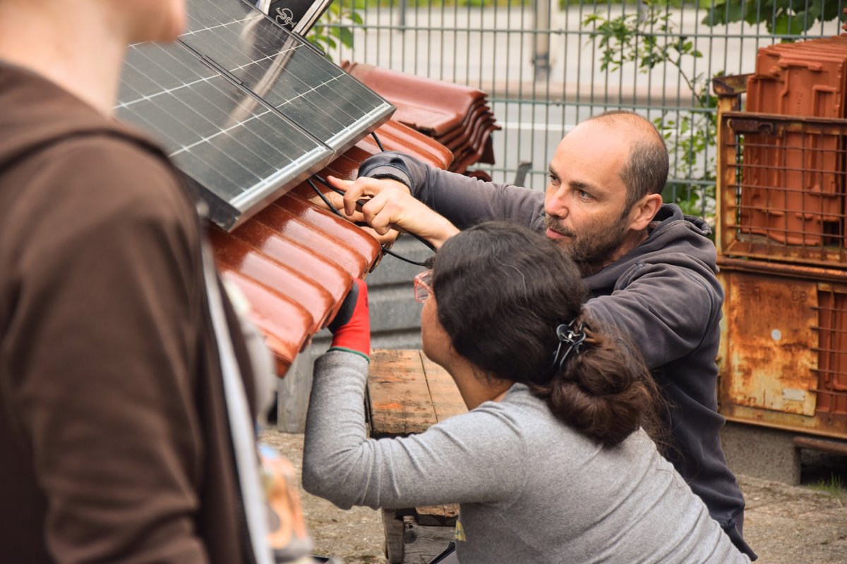 Ein Solarcamp ist eine zweiwöchige Lehrveranstaltung zur Installation von Photovoltaik-Anlagen, bei der du in einer diversen Gruppe aus 25 Leuten sowohl theoretisch als auch praktisch die Funktionsweise und Technik der Anlagen, handwerkliche Kniffe und das sichere Anbringen von PV-Anlagen auf dem Dach erlernst. Die erste Woche besteht aus drei Tagen Theorie samt einer Schulung und eines Testes zur elektrotechnisch unterwiesenen Person (EuP), sowie aus zwei Tagen praktischem Lernen an Übungsdächern. In der zweiten Woche kannst Du dein neu erlerntes Wissen bei einem Handwerksbetrieb aus der Photovoltaik-Branche in Form eines Praktikums real anwenden und so einen Einblick in das Berufsfeld erhalten. Rund um die zwei Wochen wird es genügend Zeit zum gemeinsamen Austausch, Beisammensein und gemeinsamen Aktivitäten geben.