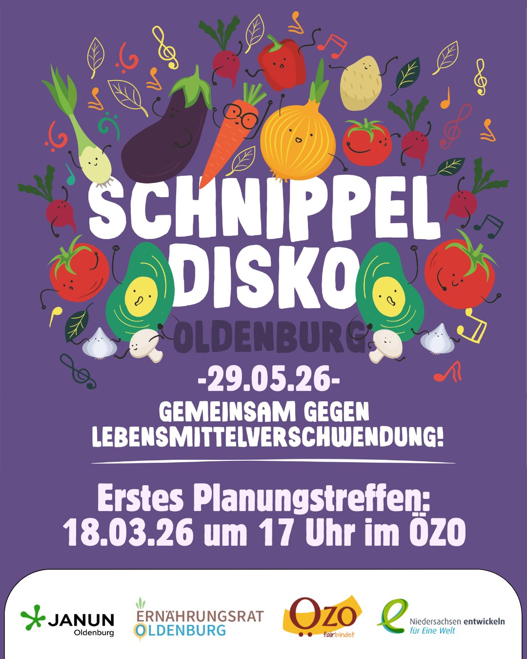 Am Mittwoch, 18. März treffen wir uns um 17 Uhr im ÖZO überm Weltladen (Kleine Kirchenstraße 12, 26122 Oldenburg), um die diesjährige Schnippeldisko zu planen - und dafür brauchen wir Dich! 💚