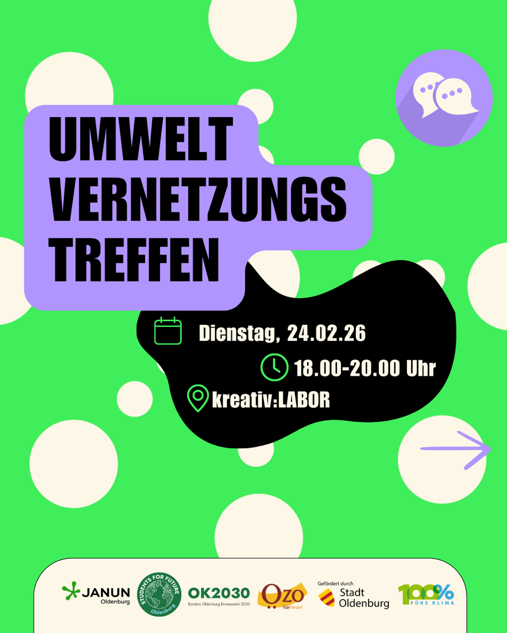 Am 24. Februar 2026 findet das nächste Umweltvernetzungstreffen im kreativ:LABOR in Oldenburg statt🥳